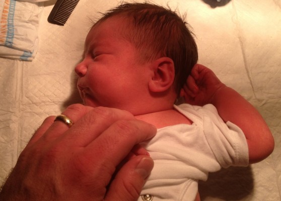 Gwendydd (Welsh for “morning star”/”Venus” aka “beauty”) came into this world at 12:23pm yesterday, May 27th, weighing in at 9lbs 7oz and measuring 22″ in length. Both baby and momma are feeling great and Gwen’s older siblings are all taken with her.